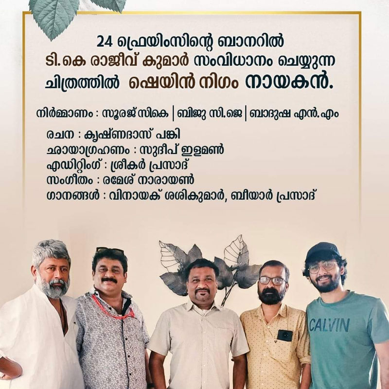 ടി കെ രാജീവ് കുമാര് സംവിധാനം ചെയ്യുന്ന പുതിയ ചിത്രത്തില് ഷെയിന് നിഗമാണ് നായകന്. 24 ഫ്രെയിംസിന്റെ ബാനറില് സൂരജ് more...