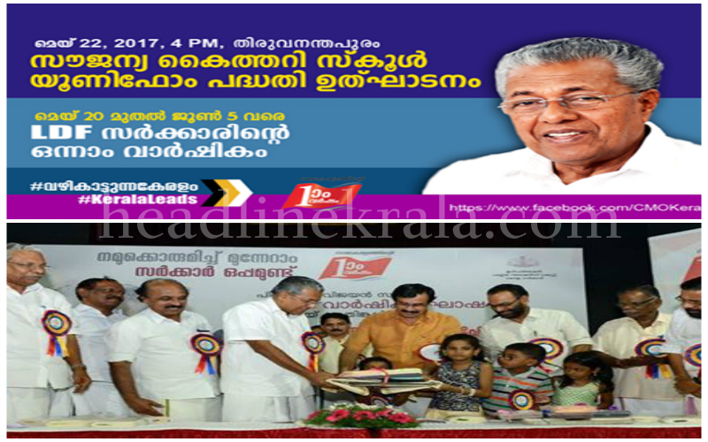 സംസ്ഥാനത്തെ എല്പി സ്കൂള് വിദ്യാര്ത്ഥികള്ക്കായുള്ള സൗജന്യ കൈത്തറി സ്കൂള് യൂണിഫോം പദ്ധതിയുടെ ഉദ്ഘാടനം മുഖ്യമന്ത്രി പിണറായി വിജയന് നിര്വ്വഹിച്ചു. രണ്ടര more...