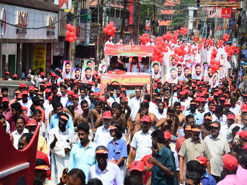 ഉറച്ച ജനപിന്തുണയുമായീ ജനസാഗരം കോട്ടയം LDF സ്ഥാനാര്‍ഥി വി എന്‍ വാസവന്‍ പത്രിക സമര്‍പിച്ചു. ജില്ലാ വരനാതികാരി  കൂടി ആയ കളക്ടര്‍ പി കെ സുധീര്‍ ബാബു വിന്റെ ചേംബറില്‍ എത്തിയാണ് സ്ഥാനാര്‍ഥി പത്രിക സമര്‍പിച്ചത്. LDF നേതാക്കളായ കെ സുരേഷ് കുറുപ്പ് MLA, സി കെ ആശ MLA, സി കെ ശശിധരന്‍, ടി ര്‍ രഘുനാഥന്‍ എന്നിവരും സ്ഥാനാര്‍ഥിയെ അനുഗമിച്ചു. രാവിലെ ഒന്‍പതു മണിയോടെ CPIM ജില്ല കമ്മിറ്റി ഓഫീസില്‍ നിന്നും കാല്‍ നടയയാണ്‌ വി എന്‍ വാസവന്‍ നേതാക്കള്‍ക്ക് ഒപ്പം പത്രിക സമര്‍പണത്തിനു പുറപ്പെ ട്ടത്‌. ആയിര കണക്കിന് പ്രവര്‍ത്തകരും സ്ഥാനാര്‍ഥി യെ അനുഗമിച്ചു. തിരുനക്കര എത്തിയപ്പോള്‍ ജന സാഗരം, സ്ഥാനാര്‍ഥിയെ രക്തഹാരം അണിയിക്കാനും ആശംസകള്‍ നേരാനും വന്‍ തിരക്ക്. പ്രവര്‍ത്തകരുടെ നിര്‍ബന്ധത്തിനു വഴങ്ങി സ്ഥാനാര്‍ഥി തുറന്ന വാഹനത്തിലേക്ക്. വഴിനീളെ  സ്വീകരണങ്ങള്‍ ഒരുക്കി തൊഴിലാളികളും, വിദ്യാര്‍ഥികളും , യുവജനങ്ങളും.  സമൂഹത്തിന്‍റെ നാനാതുറയില്‍ ഉള്ളവര്‍  വഴിഓരത്ത് കത്തുനിന്ന് സ്ഥാനാര്‍ഥിക്ക് പിന്തുണ അറിയിച്ചു.ഒഴുകി എത്തിയ പ്രവര്‍ത്തകരുടെയും പൊതുജനങ്ങളുടെയും പിന്തുണ വിജയം സുനിശ്ചിതം ആക്കുന്നു എന്ന് സ്ഥാനാര്‍ഥി പറഞ്ഞു. വിവിധ വാദ്യ മേളങ്ങളുടെ അകമ്പടിയോടെ കനത്ത ചൂടിനെ അവഗണിച്ചും ഒഴുകി എത്തിയ ജനകൂട്ടം കോട്ടയത്ത്‌ LDF ന്‍റെ മേല്‍കൈ ഉറപിക്കുന്നു.