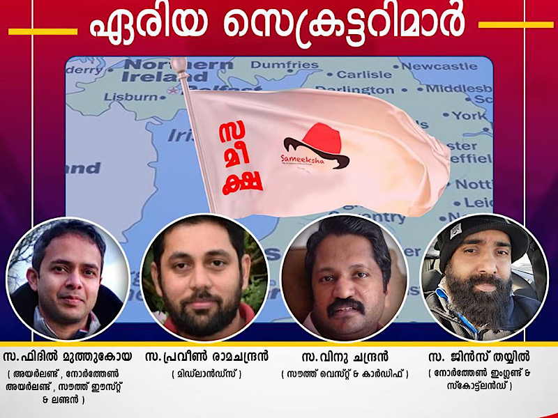 സംഘടനയുടെ സുഖമമായ പ്രവർത്തനത്തിന് ബ്രാഞ്ചുകളെ ഏരിയകൾ ആക്കി തിരിച്ചു കൊണ്ട് ഒരോ ഏരിയകൾക്കും സമീക്ഷUK ഏരിയ സെക്രട്ടറിമാരെ തീരുമാനിച്ചു. സഖാവ് more...